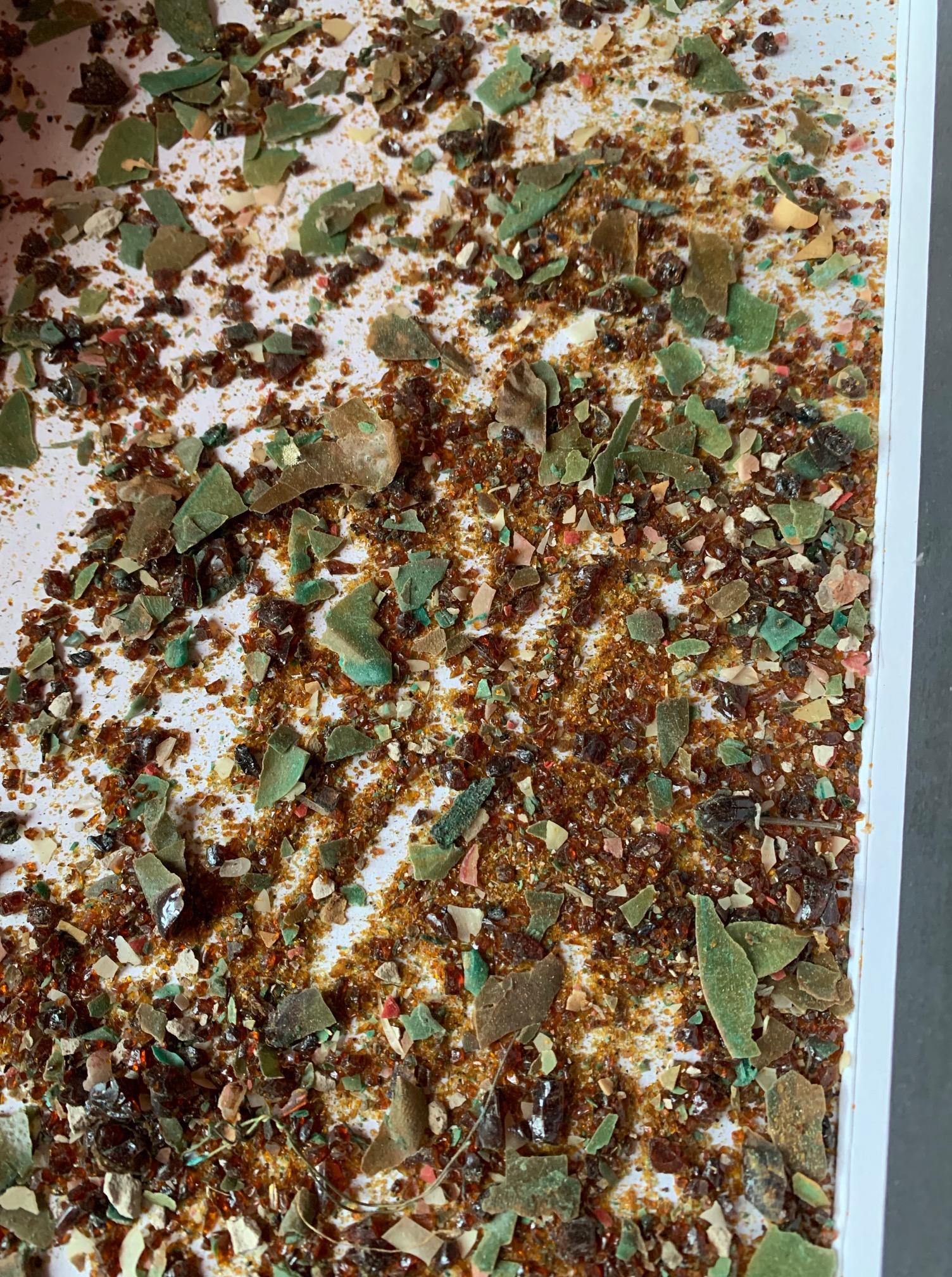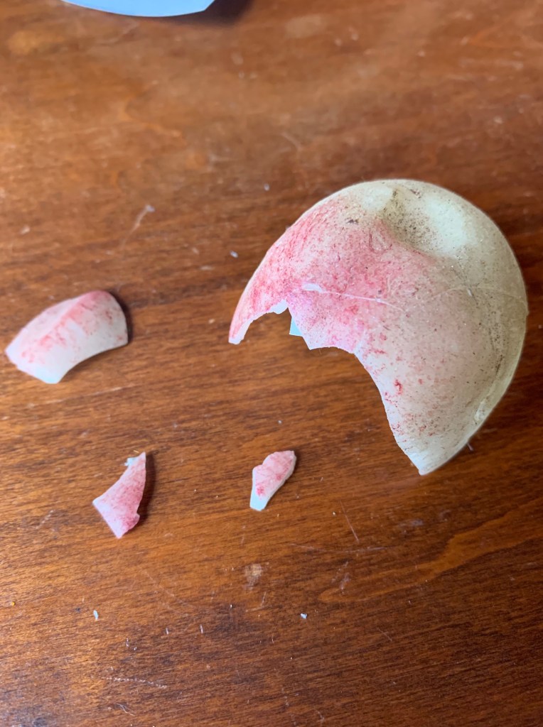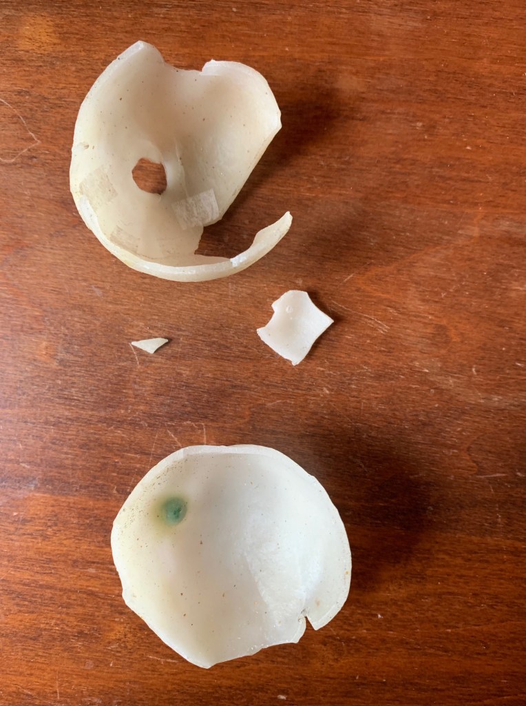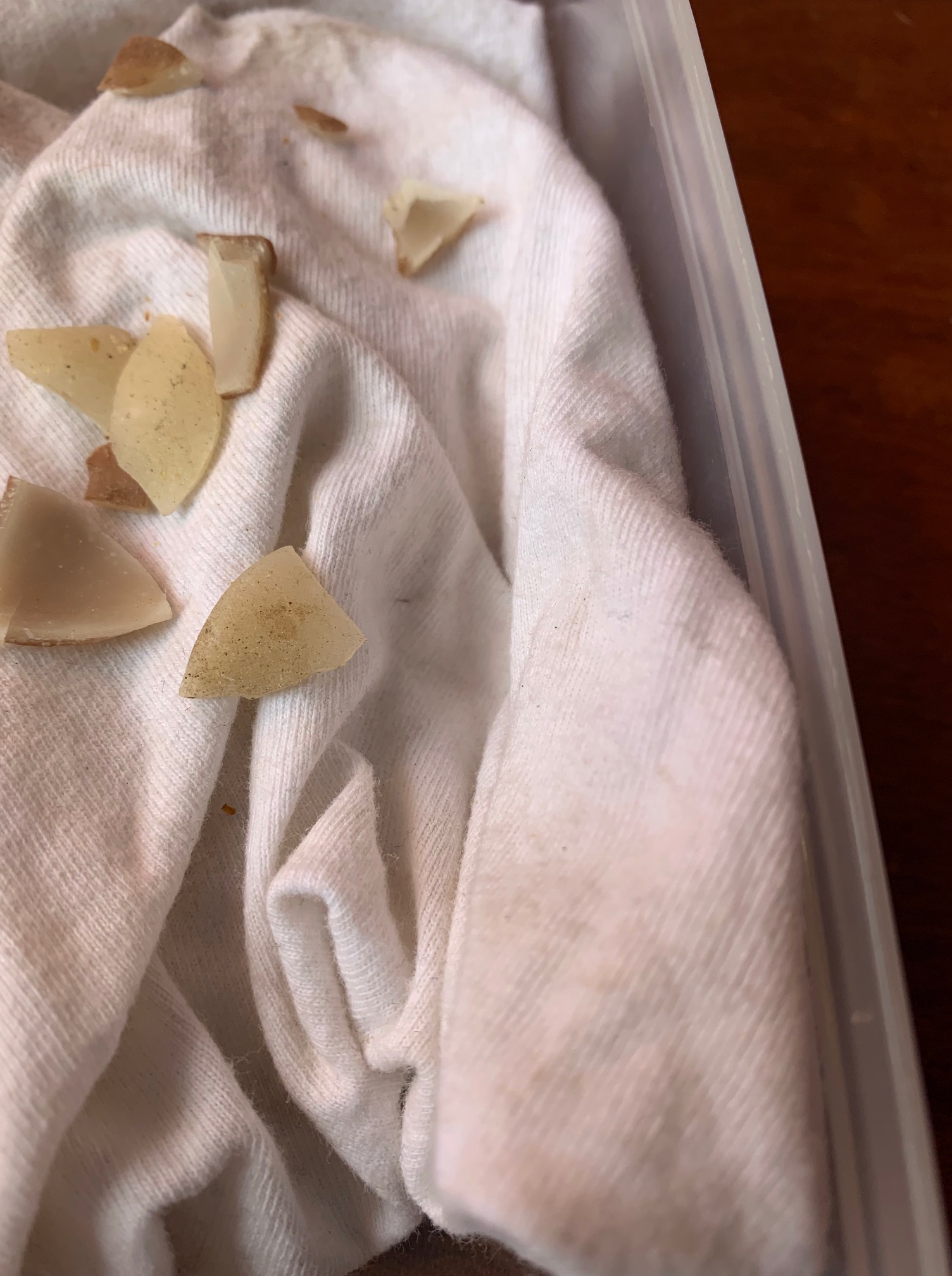 I really felt bad about this.  Not just because of the cost, but because this unique piece was so severely damaged, when keeping things preserved is so important to me.  I stared at the big crumbed mess of wax and broken leaves for about 5 minutes and decided I had two options – discard it, or to at least attempt to fix it.