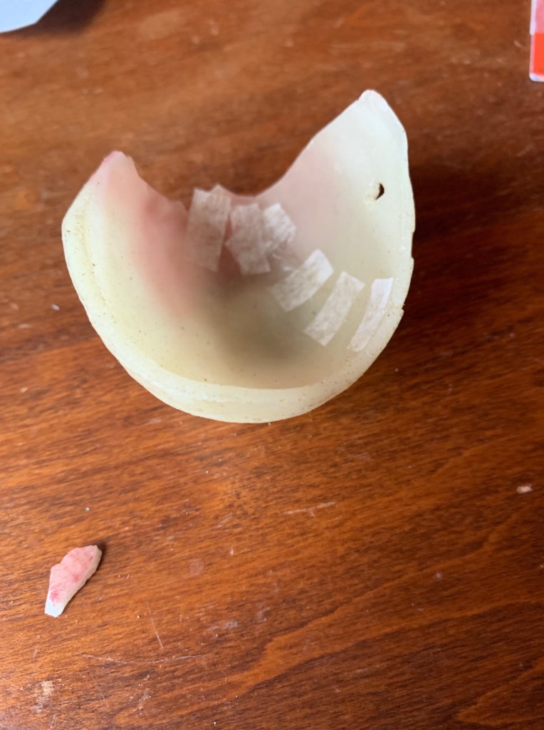 The first step was to look for the pieces of the girls head.  If I couldn’t salvage that, there wouldn’t be much sense in moving on.  All of her quirky little facial features were intact on one larger piece, so that was encouraging.