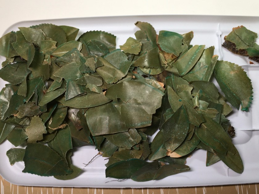 I came to the realization that I was not going to be able to save the leaves.  They were too brittle and too badly broken.