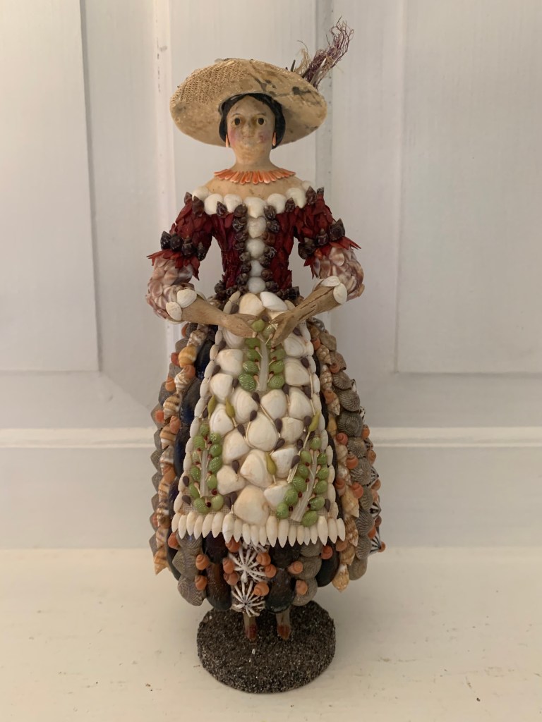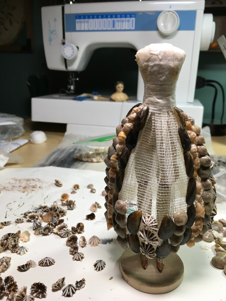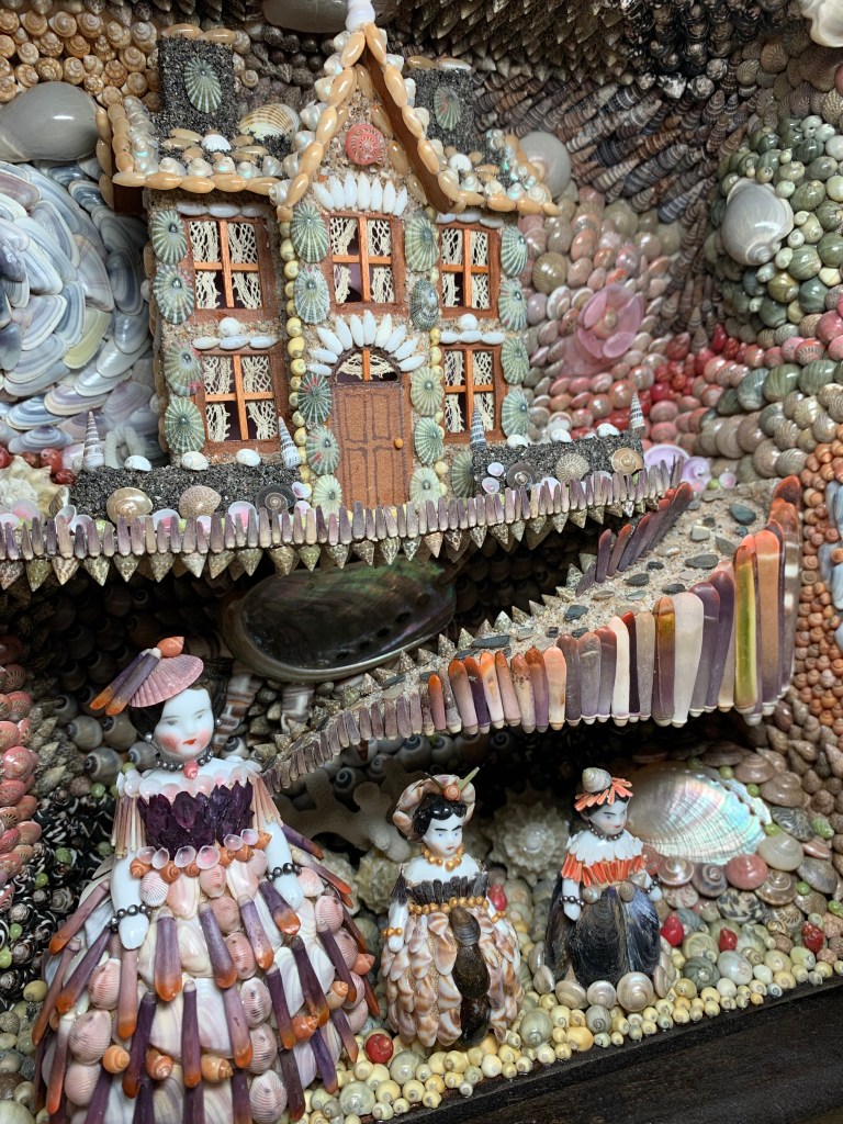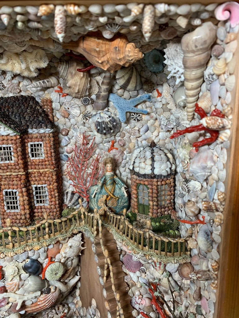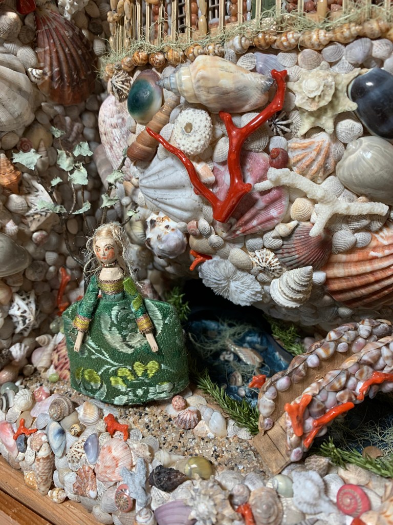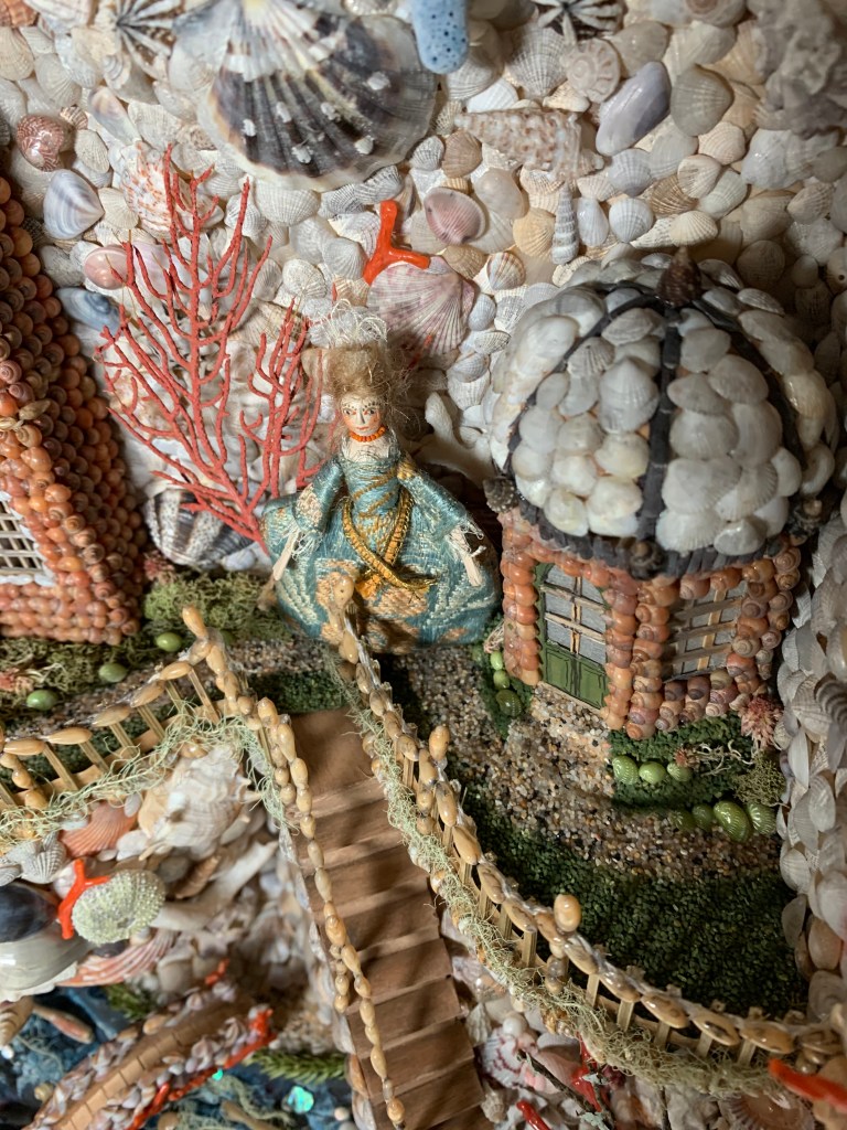 The first one was inspired by 18th century Shellwork grottos that were made by Quaker women in the 18th century in Philadelphia. One is currently part of the Williamsburg Museum Collection and one is part of the Stenton Collection. When I first saw these I was just so entranced. Both have intricate shell designs to include buildings, grotto sections and wax figures in silk clothing.